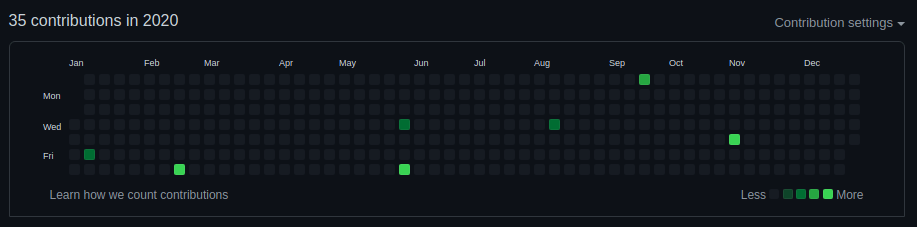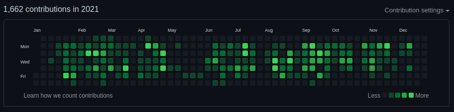 As my github contribution graphs for 2020 vs 2021 show, I’m back writing code on a regular basis.