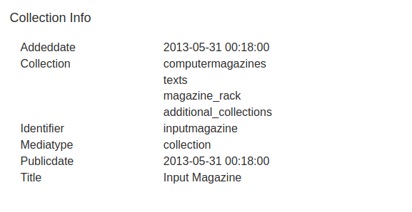 The Archive organises items into “collections”. The issues of a magazine will be organised into a single collection.