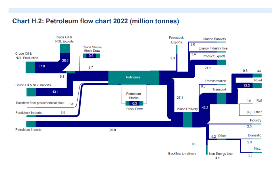 The diagram is a summary of some more detailed flows that are mapped out in Annex H of the statistics. The more detailed diagrams cover Petroleum, Natural Gas, Electricity, Renewables, Solid Fuels and Coal. I’ve extracted a few of them below.