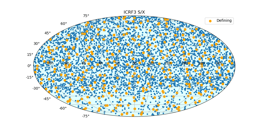 There have been multiple versions of the ICRF but the most recent version came into effect in January 2019. It’s based on 40 years of observations of 4588 extragalactic radio sources, most of which are quasars. 303 of them define the basic axes of the frame and the rest fill in the detail.